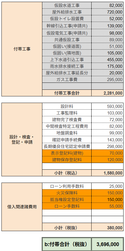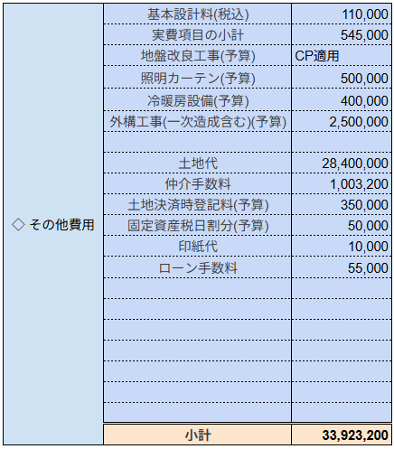 上記の全国平均と、ミドルコスト帯ハウスメーカーの総額費用を比較してみますね。