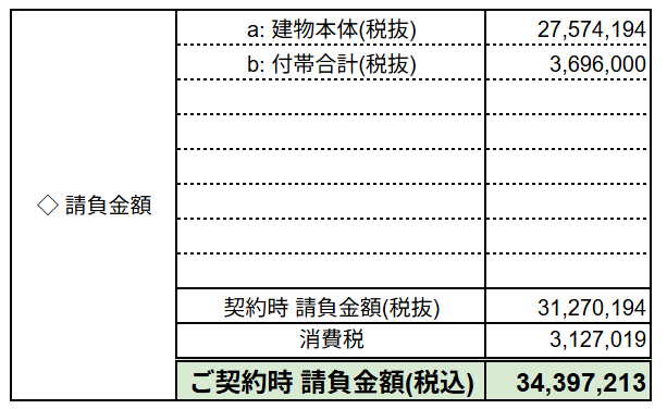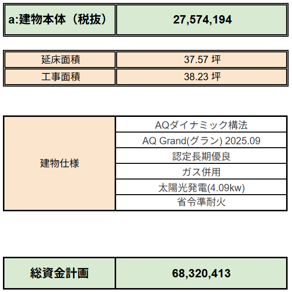 まずは、建物の仕様・建物本体価格・総資金から見てみましょう。