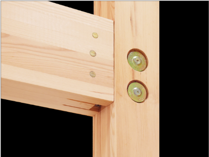 構造には、耐震性に優れたピン工法を採用しています。ピン工法とは、在来軸組工法の強度を高めるために、土台や柱、梁などの接合部に「ドリフトピン」と呼ばれる金物を使用して接合する工法です。