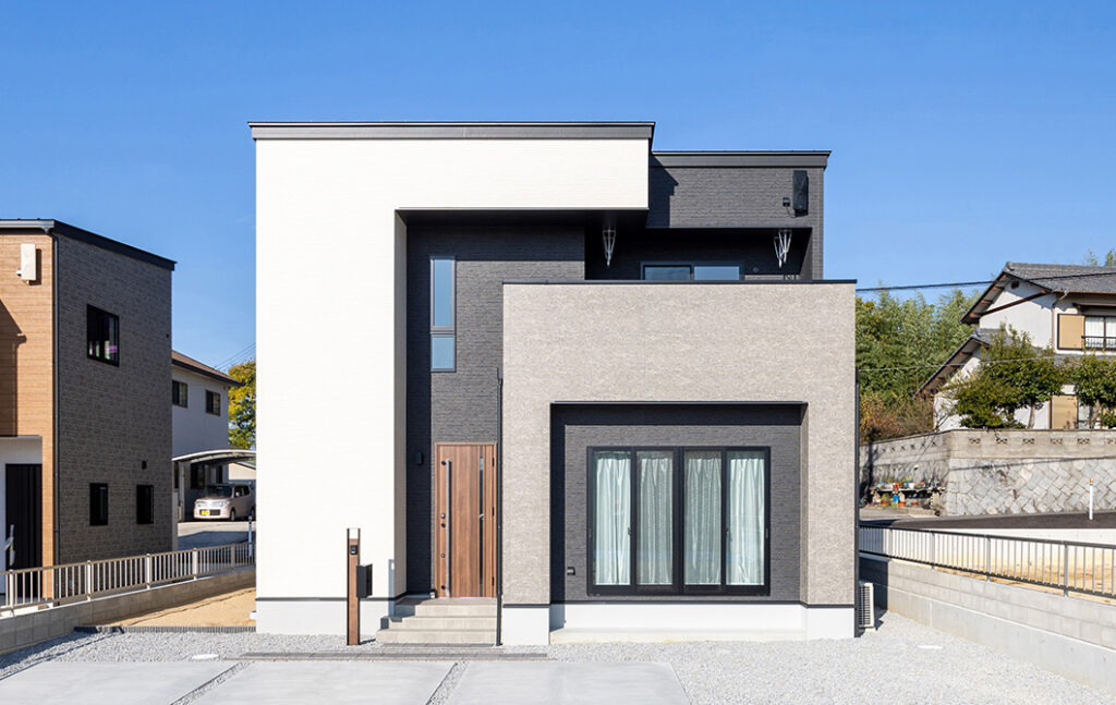 一般的な三角の切妻屋根をスタイリッシュにアレンジしたデザイン性の高い規格住宅。複数メーカーから選べる設備や内装仕様で理想の住まいを実現。ZEH水準に対応し、性能と保証の両面で長く安心して暮らせます。
