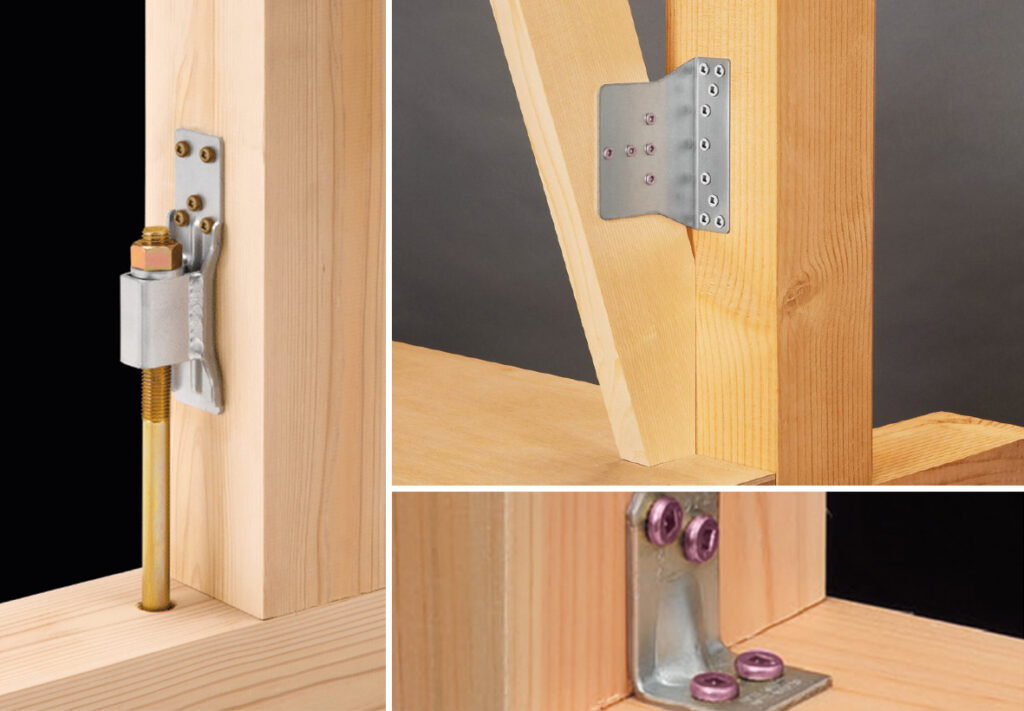 柱・梁・土台などの接合部を金物でしっかり固定し、接合部のゆるみを防ぐ。