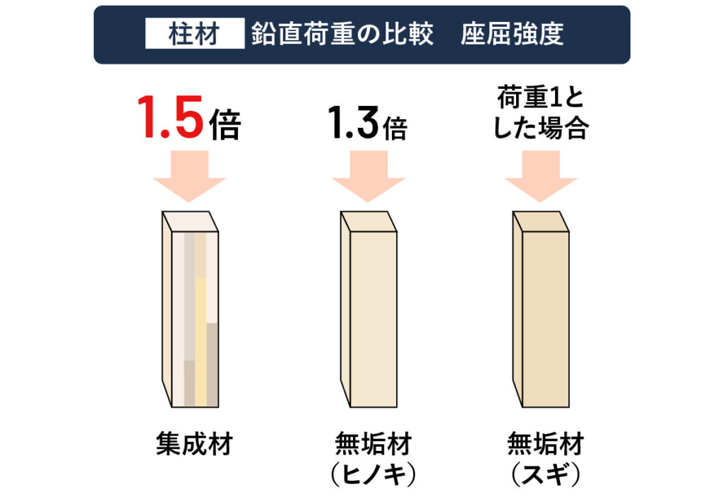 無垢材よりも強度が高く、乾燥による反りや割れが少ない安定した構造材。