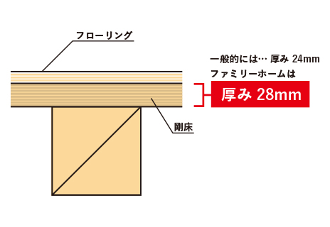 床を一体化した面構造で、建物のねじれやゆがみを抑える。地震時の水平力にも強い。