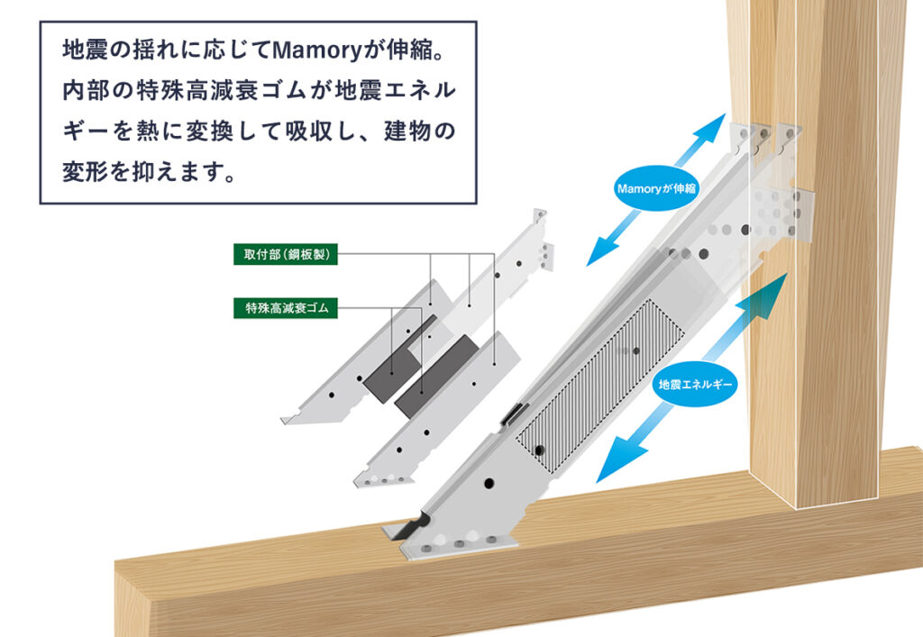 住友ゴム工業製の高減衰ゴムを利用し、地震の揺れを吸収。繰り返しの地震にも効果を発揮。