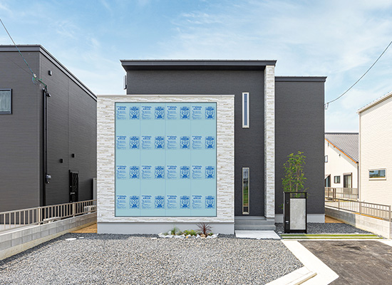 せっこうでできた無機質系の面材で、木質系の建材に比べて火に強く、燃えにくいのが特長です。膨張や収縮による変形が少なく、長期間にわたって安定した品質を維持します。さらに、湿気を通しやすい素材のため、通気層から湿気を外に逃がし、結露の発生を抑える効果もあります。