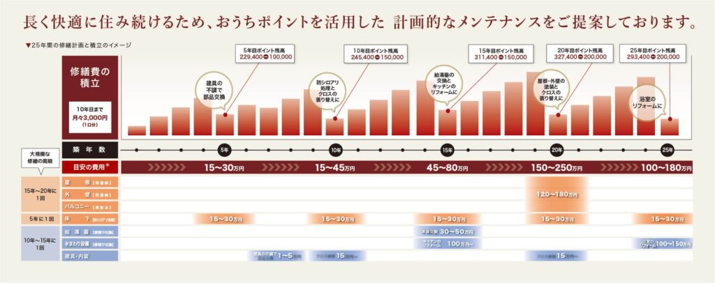 • 積立制度:「おうちポイント」により将来の修繕費を前もって準備可能