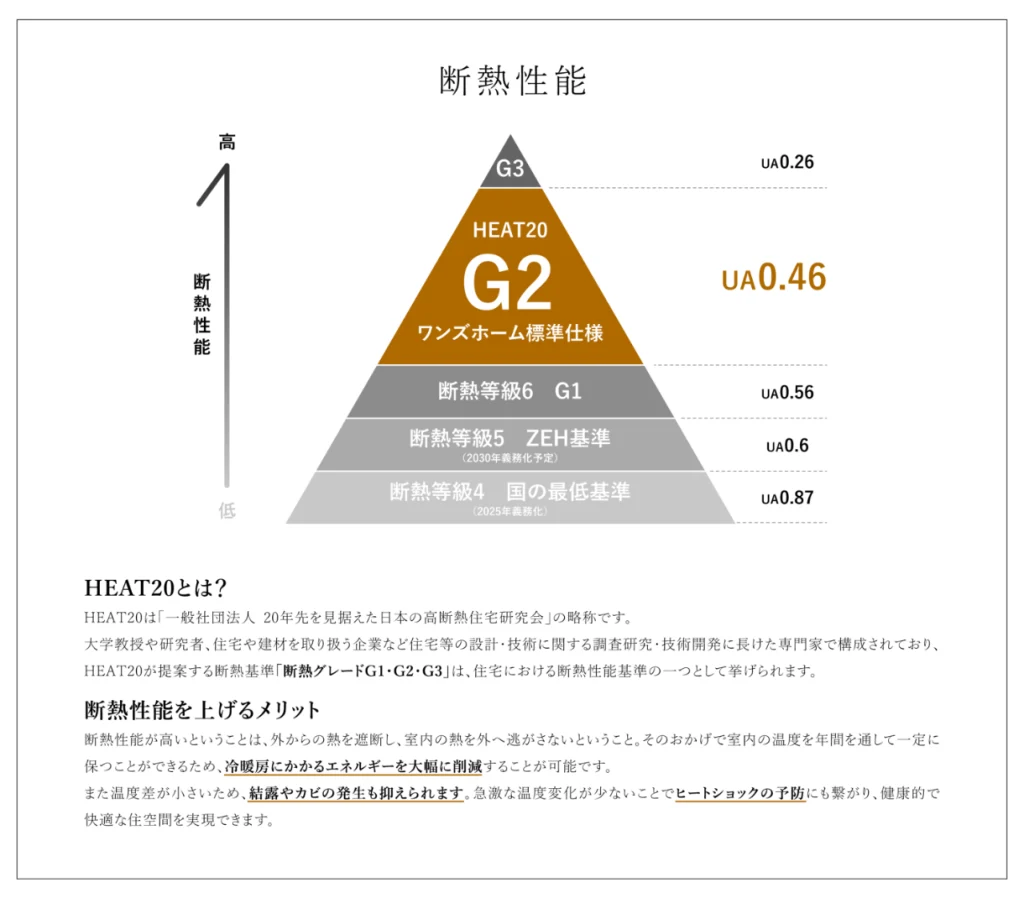 断熱性能|断熱等級6(G1)を上回る「HEAT20 G2グレード」が標準仕様