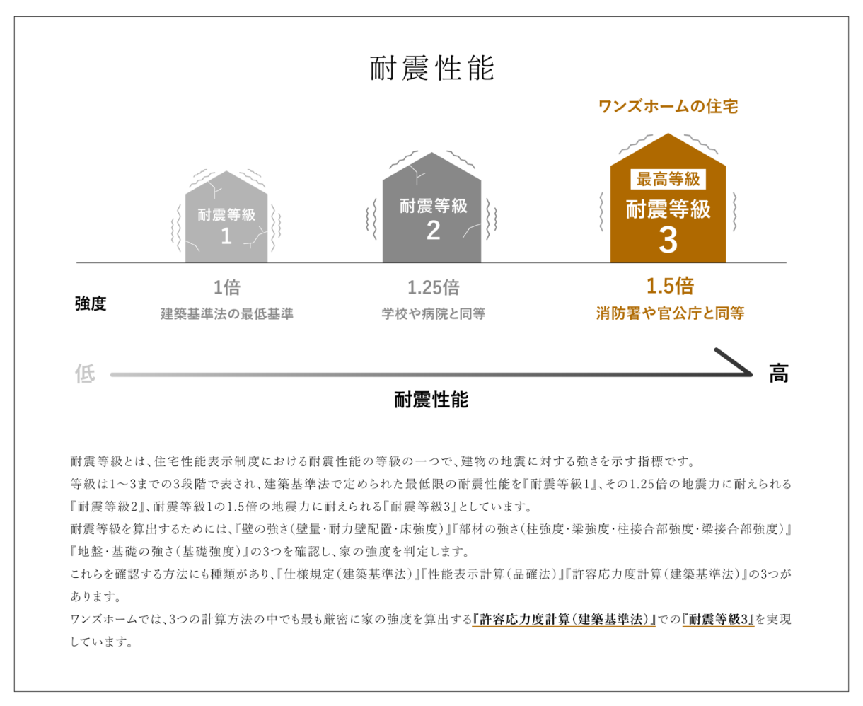 ここでは、ワンズホームの断熱性能・耐震性能・こだわりについて詳しく解説します。