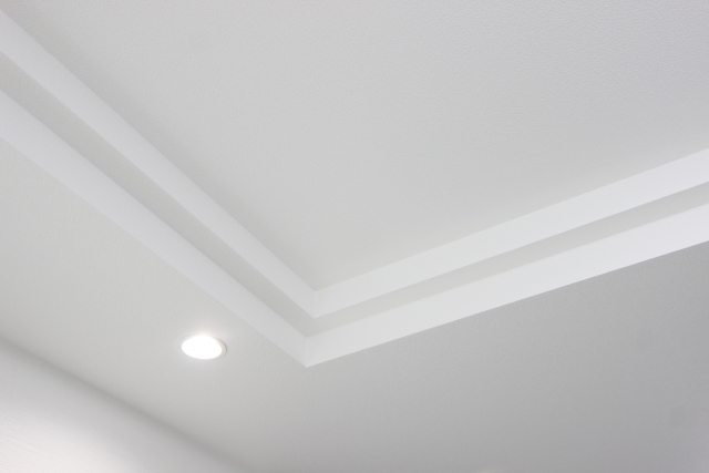 折り上げ天井の縁にモールディングを取り入れると、空間に高級感と立体的な陰影が生まれます。