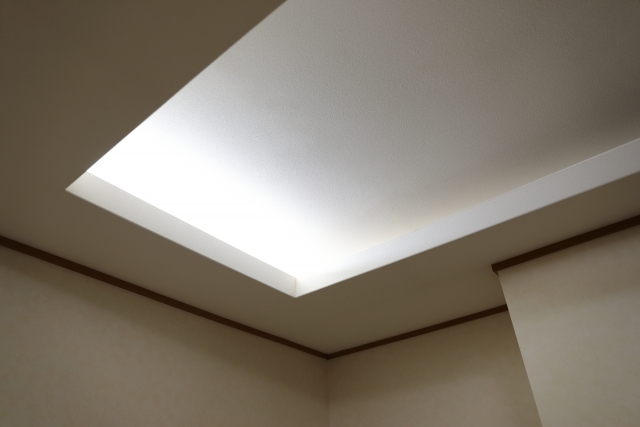 - 折り上げ部分に光源を隠す「コーブ照明」を設置すると、天井に光が柔らかく広がり、陰影豊かな表情を作れる