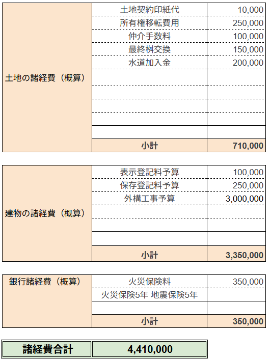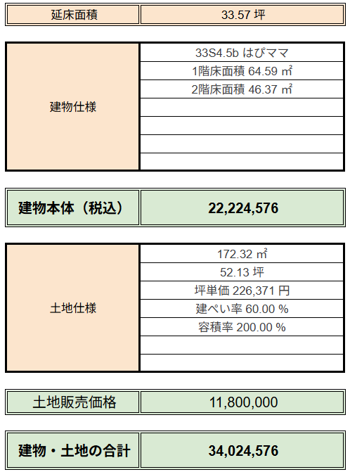 建物と土地を合わせた金額が約3,400万円でしたので、諸経費を合わせた総額は約3,840万円です。