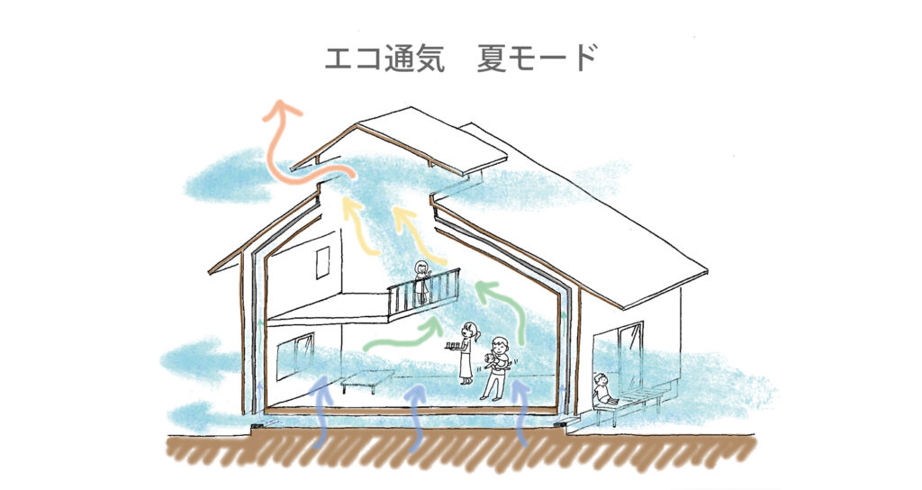 - エコ通気システムによって、夏は涼しく冬は暖かい住環境を実現している