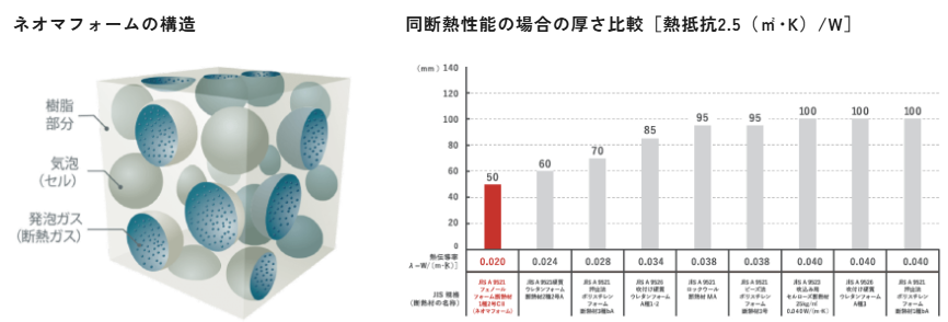 熱伝導率約0.020W/m・Kとトップクラスの断熱性を誇り、薄くても高い性能を発揮。