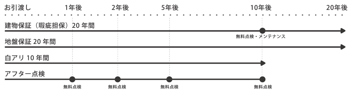 1年目・2年目・5年目・10年目(オプションで60年まで延長可能) - 建物保証(瑕疵担保)