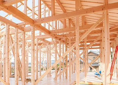 「背割れ材」は、釘の効きが悪い上に乾燥が進むと背割れ部分が開いてくるというデメリットがありますが、山田工務店(はっぴいハウス)では背割れ材ではなく厳選した檜(ヒノキ)を使用しているので安心です。