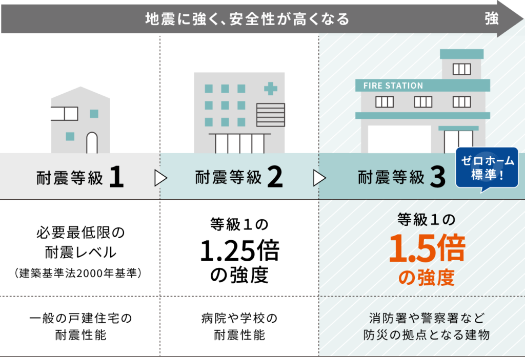 - 耐震等級3、断熱性能等級5、維持管理対策等級3が標準仕様